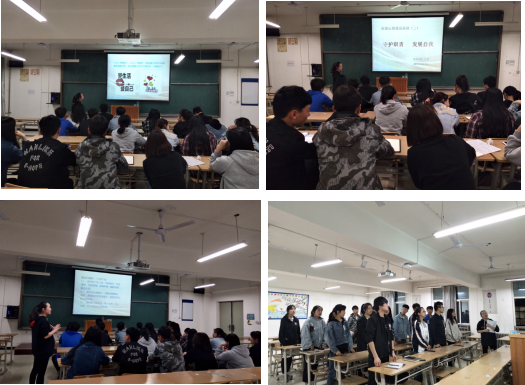 此次培训中,沈慧老师首先向同学们介绍了健康的新定义,了解健康的内容;其次对心理委员的工作内容进行了详尽阐述,对从工作意义与职责、心理异常诊断、心理问题的处理等基础心理知识进行初步普及并推荐了相关的心理健康书籍和电影。培训期间, 老师还通过与同学之间的互动和同学与同学之间的互动来使心理委员们更深刻的了解一些关于心理方面的知识与处理方法。最后,对近期心理健康工作做了一个详细的安排与布置,全体心理委员一起庄严而整齐的宣誓,他们表示,将在以后都生活中积极引导同学们用乐观的态度接纳自我、以主动的姿态投入生活,学会自我调节,丰盈人生。