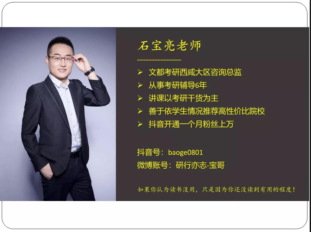 接着,石老师根据往年的总体考研形势,通过排名靠前、高性价比、容易上岸三大分类向同学们进行了详细的院校分析,让所有考研同学对报考院校有了更加清晰的了解。