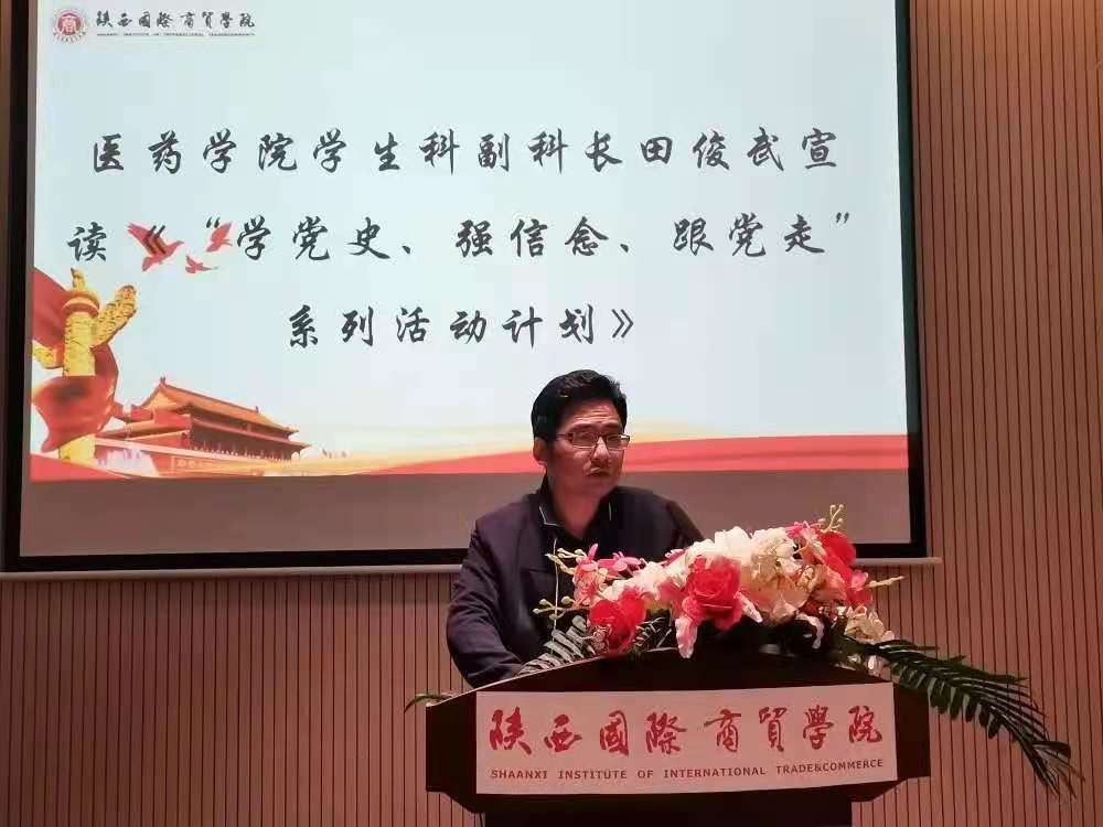 活动开始,全体同学齐唱商院赞歌。接着,田科长上台宣读《“学党史、强信念、跟党走”》系列活动计划,在宣读之前,田科长首先就假期出行安全、财产安全以及人身安全展开教育。紧接着,田科长表示,今年是中国共产党成立100周年,共青团作为党缔造和领导的青年政治组织,要把党史学习教育作为发挥党的助手和后备军作用的重大责任,作为团员思想武装和团的思想建设的重要内容,作为深化青少年思想政治引领的重大契机,引导广大团员青年厚植爱党、爱国、爱社会主义的情感,让红色基因、革命薪火代代传承。为讲好党史故事,将党史精神扎实地落实到同学们的学习中,太阳成集团tyc234cc主页即将开展一系列关于“学党史,强信念,跟党走”活动,主要包括:“庆党诗词大会”、“不忘初心,红歌颂党”太阳成集团tyc234cc主页歌手大赛、五四青年节线上征文活动、五四入团仪式、以“奋斗百年路 启航新征程”为主题的“党课我来讲”党课比赛、优秀党员主题。
