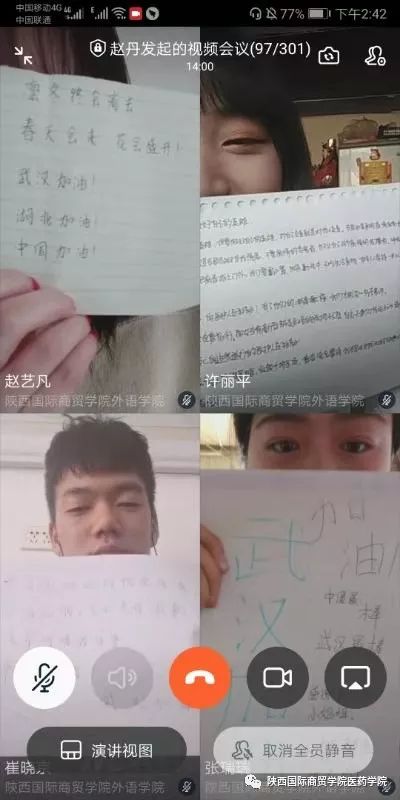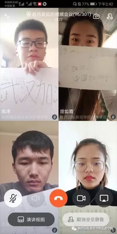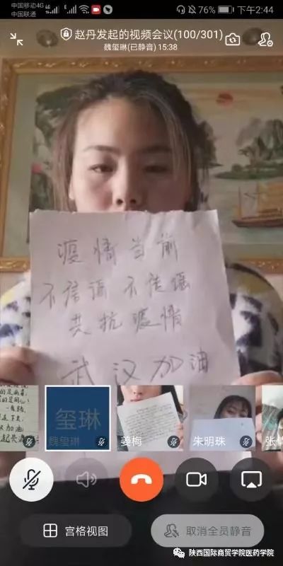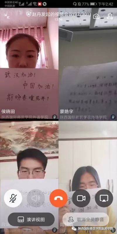 会议开始,赵老师带领同学们了解了新型冠状病毒肺炎,告诉同学们在全面认识疫情的情况下,如何做自己的英雄。和学生的互动环节以科学问答的形式让大家更深刻的认识了新型冠状病毒肺炎,通过视频会议的方式让同学们知道了雷神山火神山的中国奇迹的相关情况,知道了什么是中国力量!为缓解同学们长期在家的压抑情绪,赵老师提出了创新性的室内活动方法。同时,赵老师告诉我们,哪怕阳光再好再“诱人”,我们的正确打开的方式依旧是不出门、不恐惧、不造谣、勤通风,“在家就是最好的为国家做贡献的方式”。熬过疫情,待春暖花开之时,我们依旧能自由地行走在阳光下。其次,赵老师介绍了开学的课程情况,积极响应了“停课不停教、停课不停学”,确保学校网课运行的正常情况下,做到认真学习,不投机取巧。指导同学们通过利用全国高校免费开放的优质在线课程来丰富自己的知识,对开学时间也做了具体的解释。并推荐给同学们几本好书一起阅读。