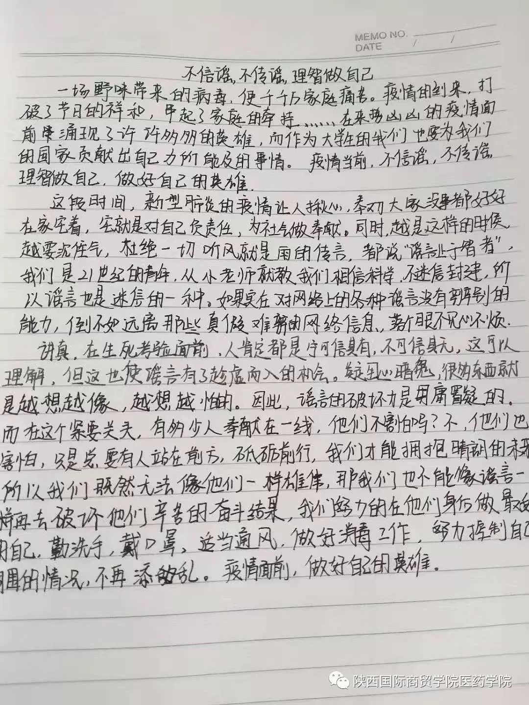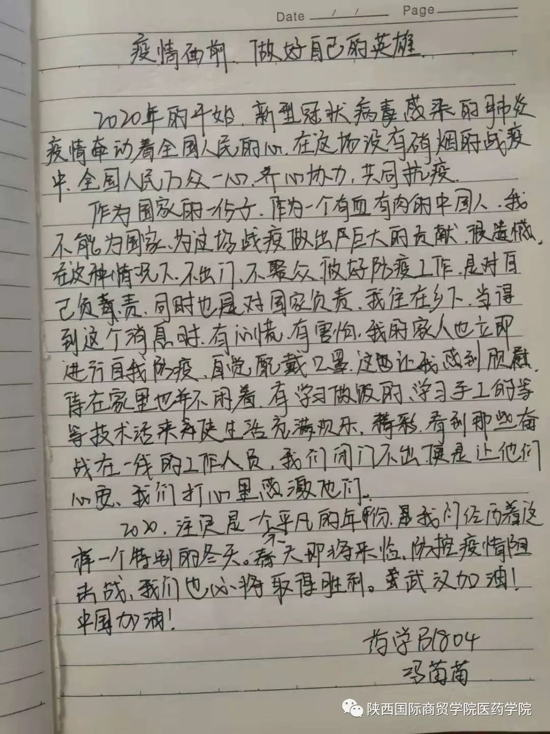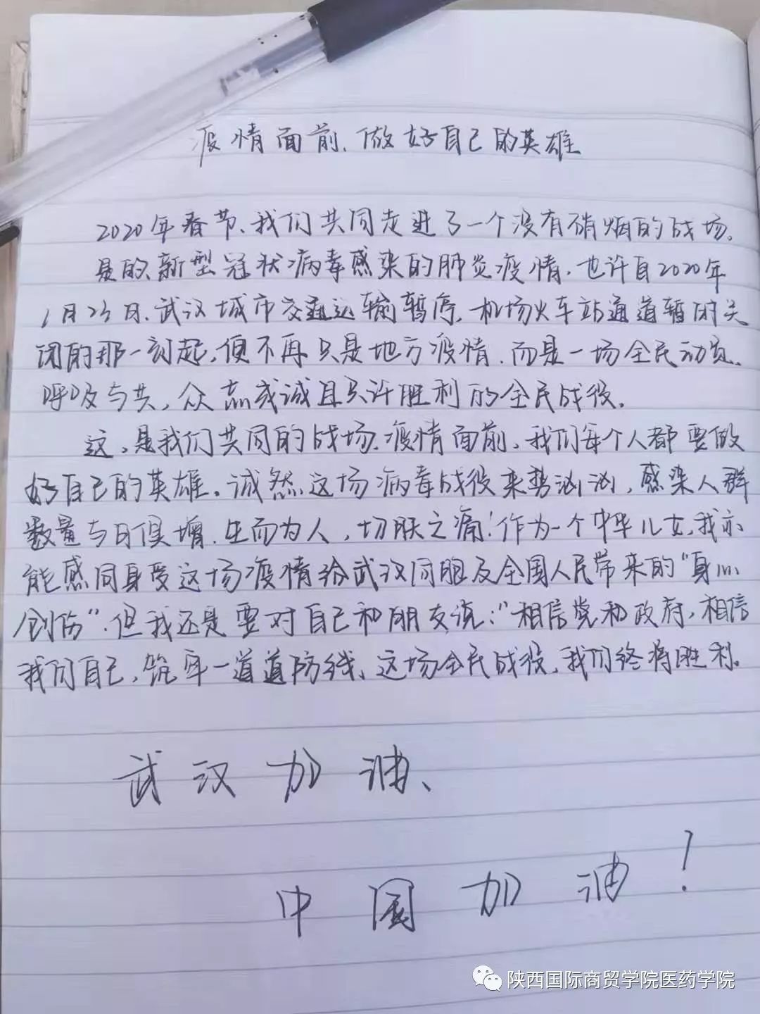 同时,18级本科学生通过手写祝福的方式为祖国和武汉送上最真挚的问候和祝福,有道是灾难无情人有情,由衷地希望山河无恙国泰民安。