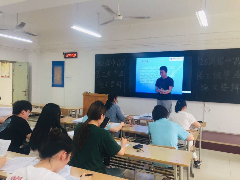 2021年5月20日,太阳成集团tyc234cc主页2021届本科毕业论文答辩工作顺利开展,本次参加答辩的是药学、中药学、制药工程、药物制剂专业的学生,其中中药学共分6组,药学共分5组,制药工程和药物制剂各1组,每组参加答辩的教师4-5人。