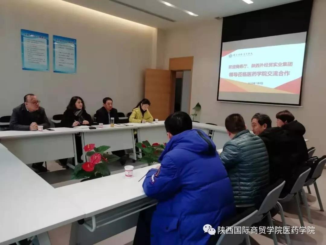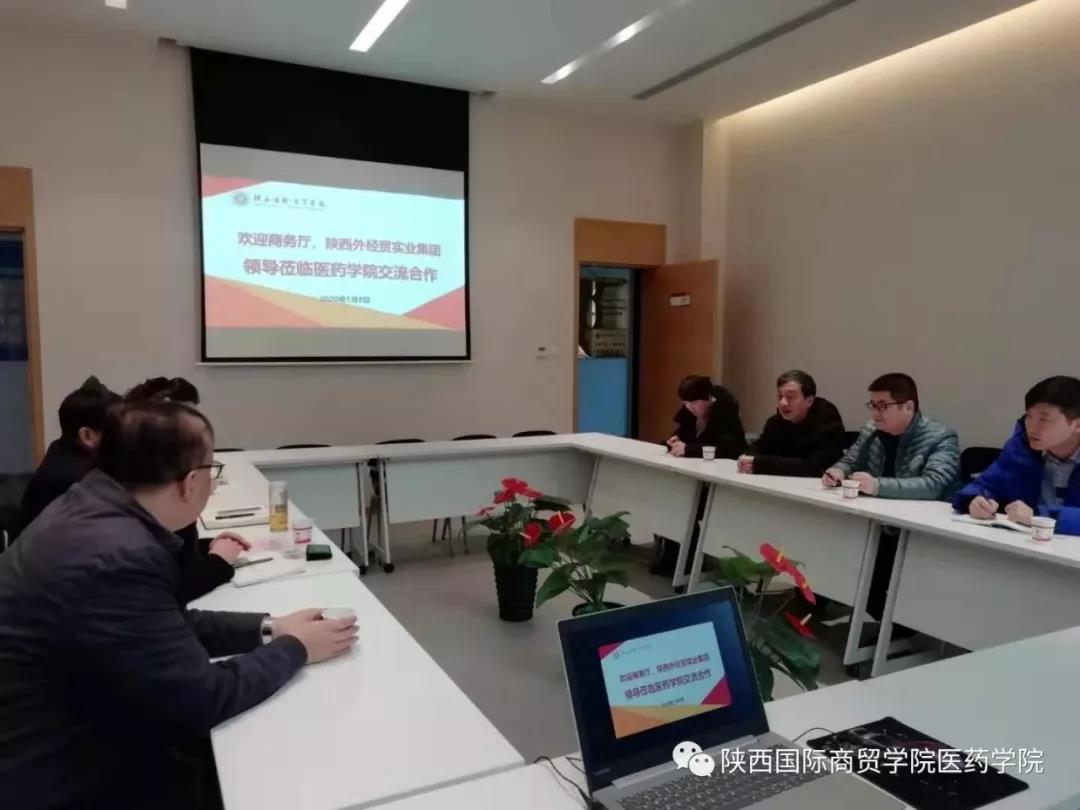 2020年1月8日,商务厅和陕西外经贸实业集团领导一行四人莅临太阳成集团tyc234cc主页交流合作,太阳成集团tyc234cc主页赖普辉院长、王飞娟副院长、国际交流处张老师参加座谈会,会议由太阳成集团tyc234cc主页党总支副书记刘亚锋主持。