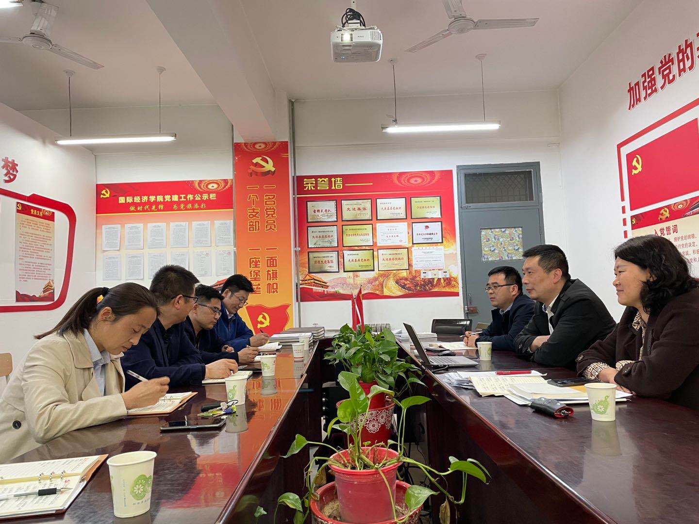 刘亚锋书记表示,通过交流学习,对国际院党建工作的经验做法、党支部标准化规范化建设成效方面有了进一步了解,特别是“全国党建工作样板支部”建设的有效经验,对我集团教工第二支部创建“全国党建工作样板支部”有一定指导意义,希望两院加强交流、互相促进、共同为商贸学院党建事业做出更大贡献。
