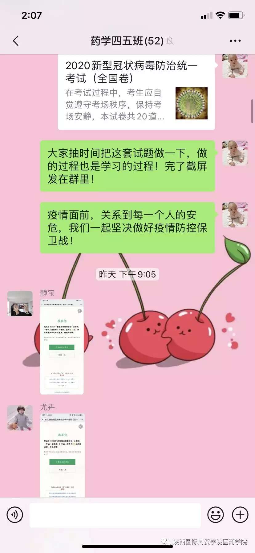学院利用微信平台推送疫情防护知识、线上主题班会、学生学习体会等内容,积极宣扬抗击疫情的正能量,学生党员和干部向疫区捐款2767.5元,还有奋战在疫情防护一线的药品生产技术T1901班的张宇、药学T1904班的王田岗,药品生产技术T1901的马哲、口腔T1804班徐子轩、护理T1904班周焘、药学B1703班韩贵萍、口腔T1804班雷王超、制药工程B1801班杨轩、药学B1606班秦雪梅等学生和党员志愿者,他们在疫情防护中发挥作用,自觉做到一个党员就是一面旗帜,让党旗在疫情防控中高高飘扬。