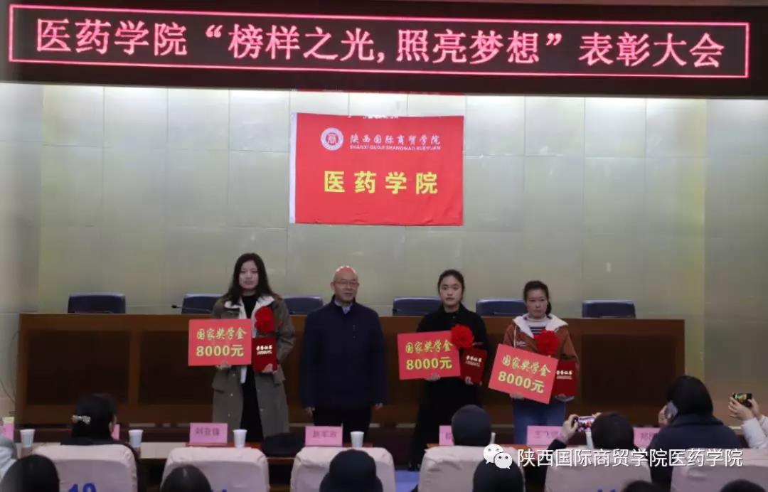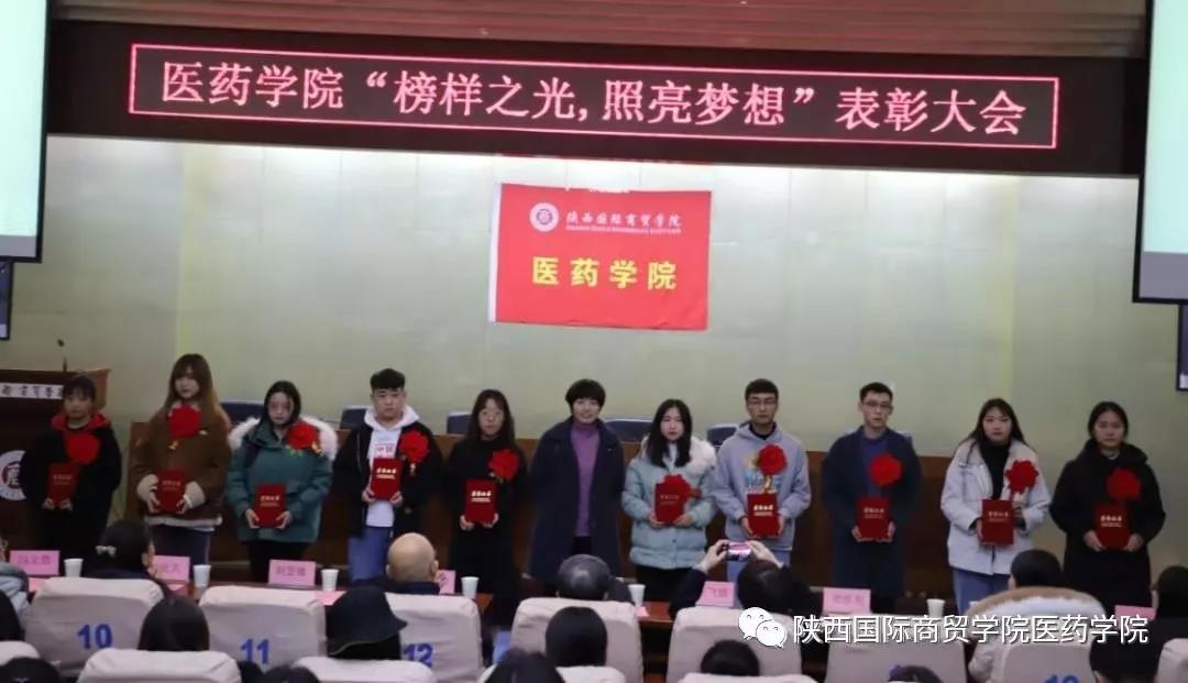 12月23日,太阳成集团tyc234cc主页在学术报告厅举行了“榜样之光,照亮梦想”2018—2019学年优秀学生表彰大会。学校党委书记赵军政,党委工作部副部长杨延凤,太阳成集团tyc234cc主页全体领导、辅导员以及300多名学生参加此次会议,大会由药学B1903班学生梁馨月主持。