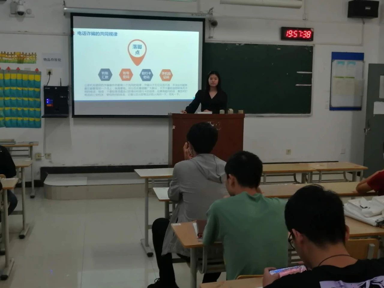 本次班会分为四个部分:一、概述什么是网络诈骗;二、介绍电信诈骗的常见形式;三、讲述如何识别网络电信诈骗;四、强调上当后应有的补救措施。辅导员以PPT的形式向同学们进行了一系列的讲解,引导同学们树立更好地网络防范意识,提高警惕性,增强网络安全防范能力。随后,班长也在微信、QQ等社交平台上转发了几例大学生受骗案件,以案例的形式,增强学生的认知,提升学生的防骗意识。