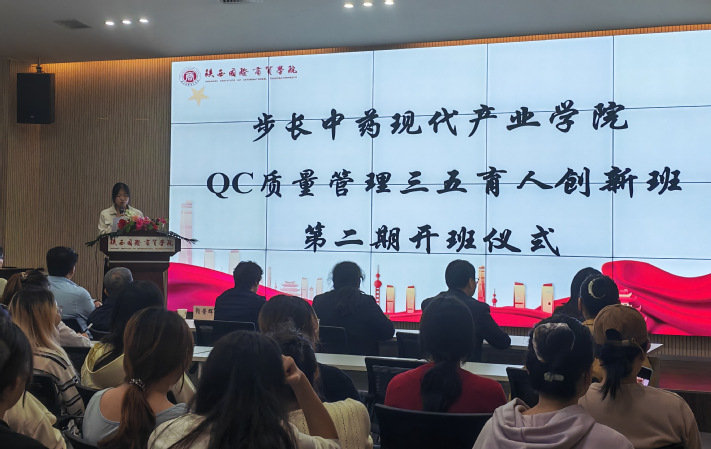 金秋九月,硕果孕育可期。为深入贯彻教育部“三全育人、五育并举”文件精神,全面落实赵超董事长的“三结合、五赋能”育人理念,9月29日下午,步长中药现代产业学院“QC质量管理三五育人创新班”(第二期,以下简称“创新班”)开班仪式在院士工作站会议室隆重举行。药学院院长王飞娟、药学院顾问赖普辉,步长制药科研部科技项目总监陈衍斌、中药资源开发中心主任许刚、中药研究院副院长兼药学院副院长彭修娟、药学院副院长韩小娟,以及来自步长科研部、陕西新丝路质检的指导教师与创新班全体学员参加。仪式由中药学专业B2202班学生梁芳主持。