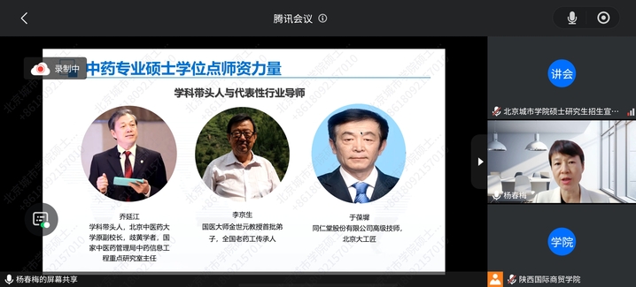 讲解环节中,北京城市学院党总支杨书记首先系统介绍了学院硕士学位授权点建设成效,从学科特色、师资力量、科研平台、实践基地等维度展现育人优势,详细解读2026年招生专业目录、报考条件及最新奖助政策,特别强调中药学专业特色领域的培养亮点与就业竞争力,助力学生理性决策。